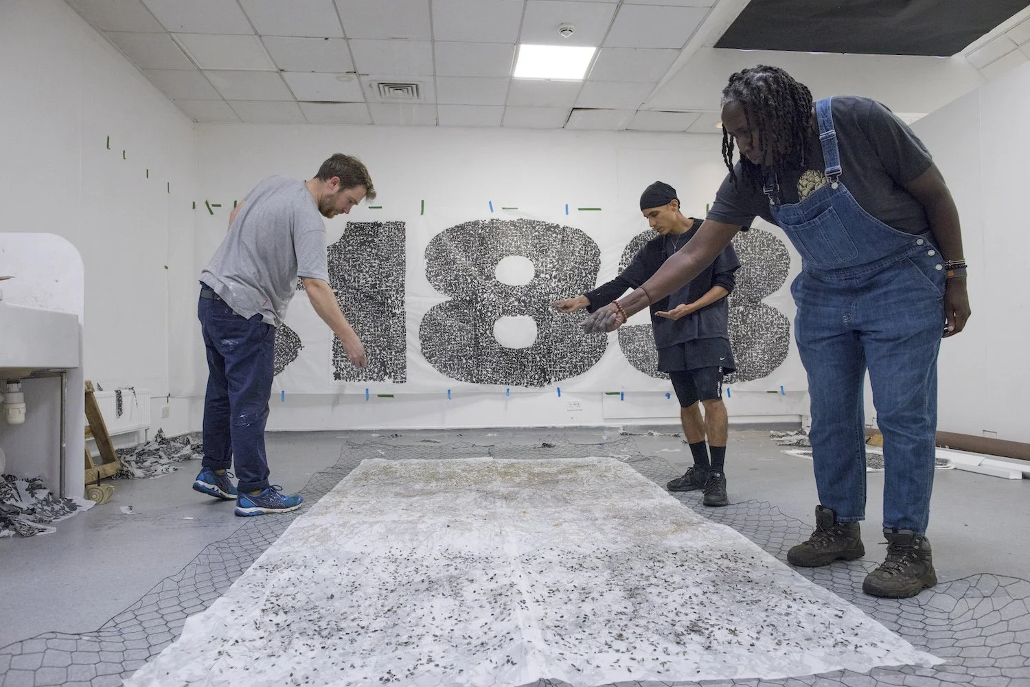 The group faced the challenge of creating a large-scale artwork equivalent to an allotment plot's size. This is about the size of a doubles tennis court. They incorporated ash from the burnt Amazon rainforest into their piece, provided by Greenpeace, symbolizing the destruction caused by the industrial food system, which clears forests for cattle and crop production. This ash, while a by-product of destruction, is also a means to enrich soil, paralleling the project's dual focus on highlighting issues and seeking solutions.